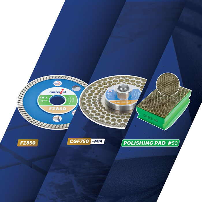 Set: FZ850 Ø115×22, CGF750 Ø115xM14, Polierpad #50, Set: FZ850 Ø125×22, CGF750 Ø125xM14, Polierpad #50