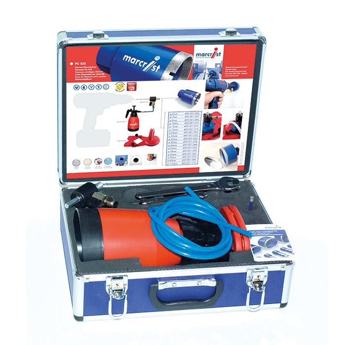 Schluss mit der Sucherei: im Fliesenleger Bohrerset ist alles enthalten, was der Profi zum Fliesenbohren braucht. Setinhalt: PG850 Fliesenbohrer Ø 6 mm, Wasserspülkopf, 1l Wasserdruckflasche, 2 m Ø 8 mm Wasserschlauch, Universal-Anbohrhilfe, Bohrkegel-Auswerfer-Set, Schlüsselsatz 10 und 22 mm, Koffer