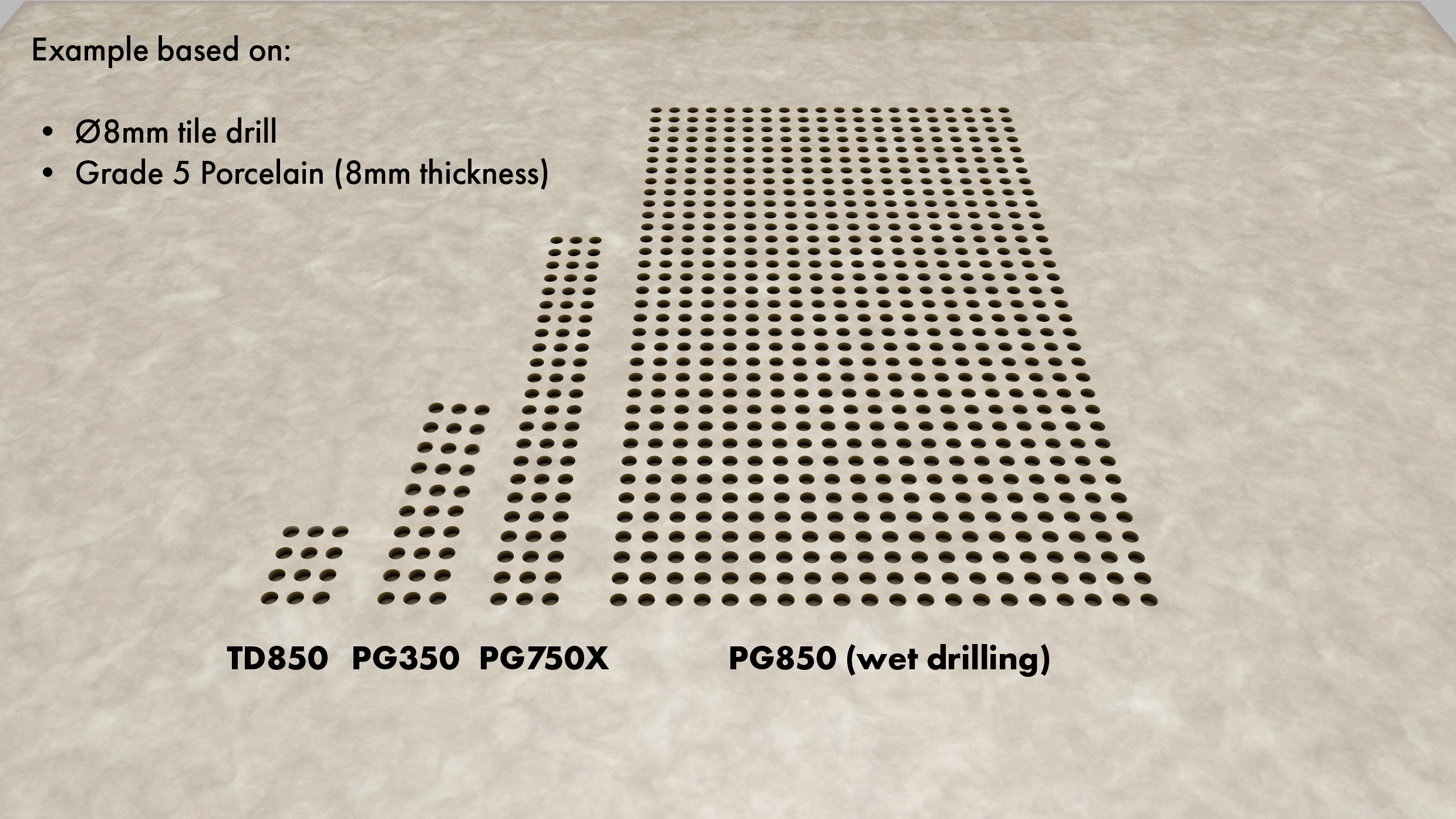 • Bis zu 500-700 Bohrungen in härtestes Feinsteinzeug