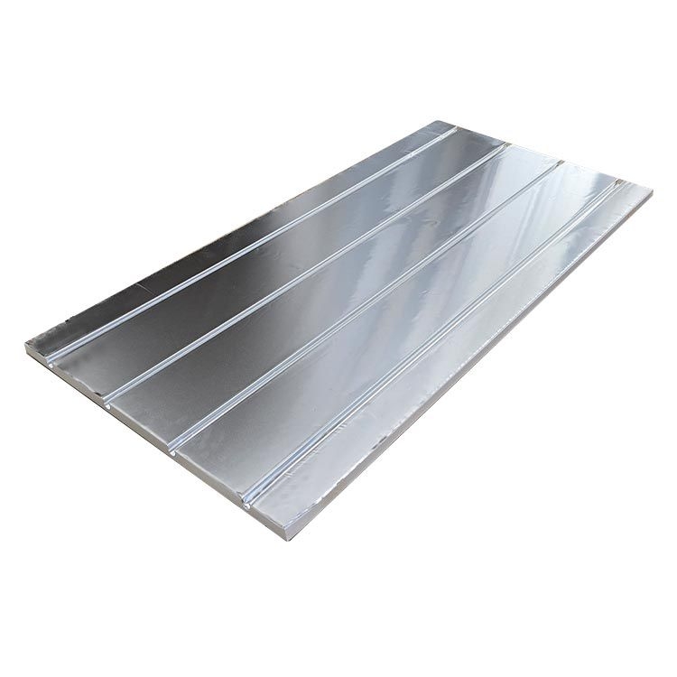 Die aufgebrachte Aluminiumfolie fungiert als Wärmeverteiler: Sie nimmt die Wärme der Rohre auf und verteilt sie gleichmäßig über die Plattenoberfläche. Das gerade Element ermöglicht eine präzise Rohrverlegung – sowohl auf der Fläche als auch entlang von Wänden.