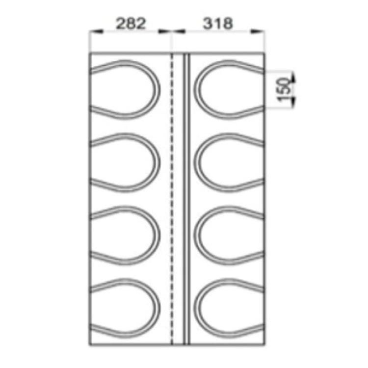 Rohrabstand: 150 mm