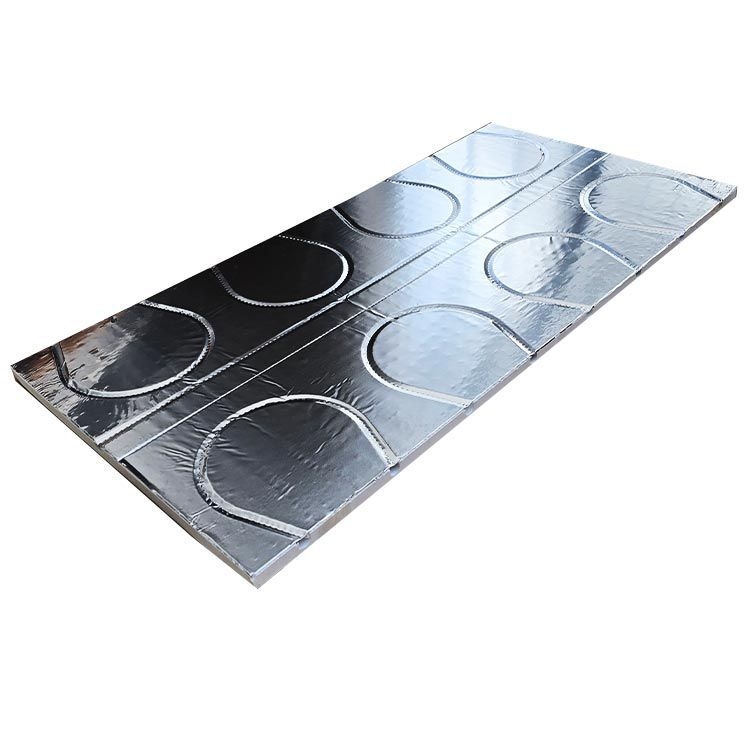 Die aufgebrachte Aluminiumfolie fungiert als Wärmeverteiler: Sie nimmt die Wärme der Rohre auf und verteilt sie gleichmäßig über die Plattenoberfläche. Das gerade Element ermöglicht eine präzise Rohrverlegung – sowohl auf der Fläche als auch entlang von Wänden.